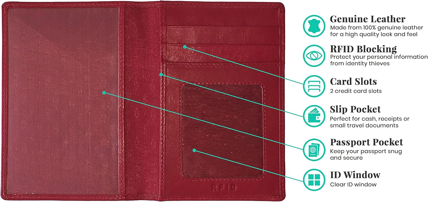 Personalized Monogrammed Red Leather RFID Passport Wallet