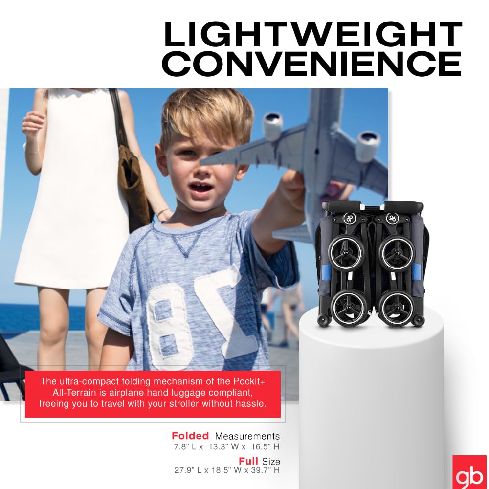 gb Pockit+ All-Terrain, Ultra Compact Lightweight Travel Stroller with Canopy and Reclining Seat in Night Blue, 10.6 pounds