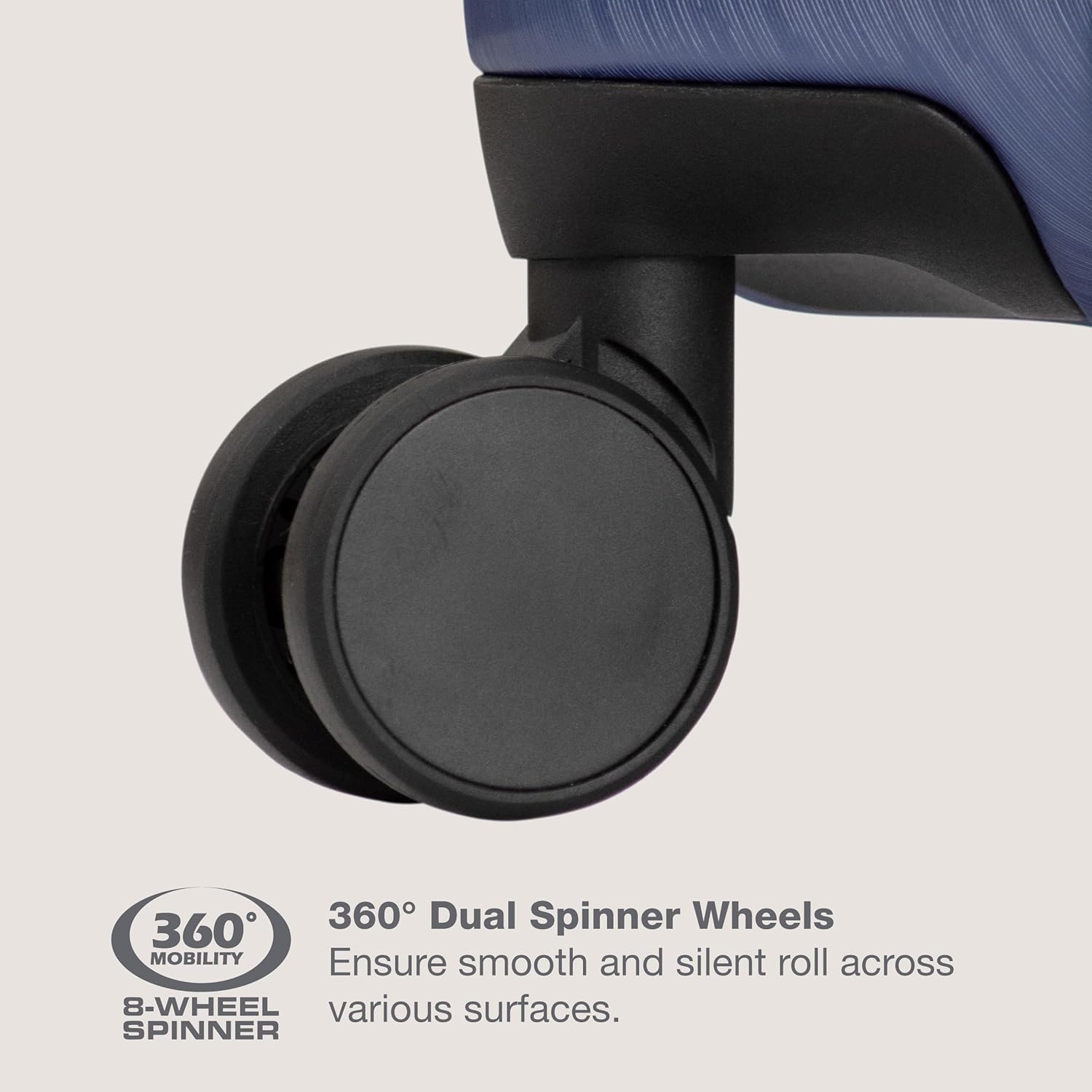 • 360-degree spinner wheels allow smooth and effortless mobility. Recessed handle and wheels to maximize the carrying capacity while meeting FFA size requirements.