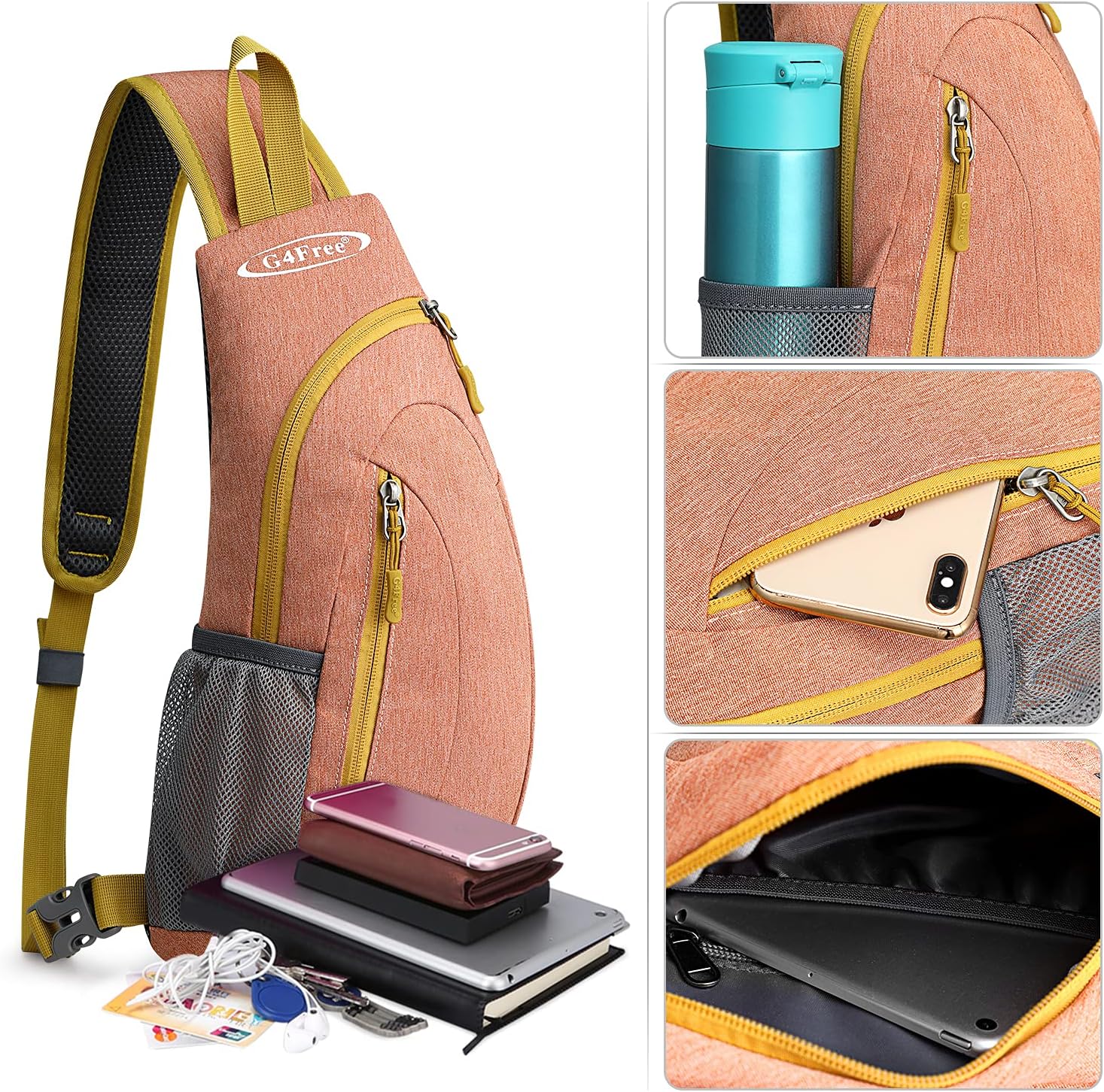 G4Free Sling Bag for Men Women, Small Crossbody Backpack Lightweight Chest Shoulder Bags for Travel, Outdoor and Sports (Light orange)