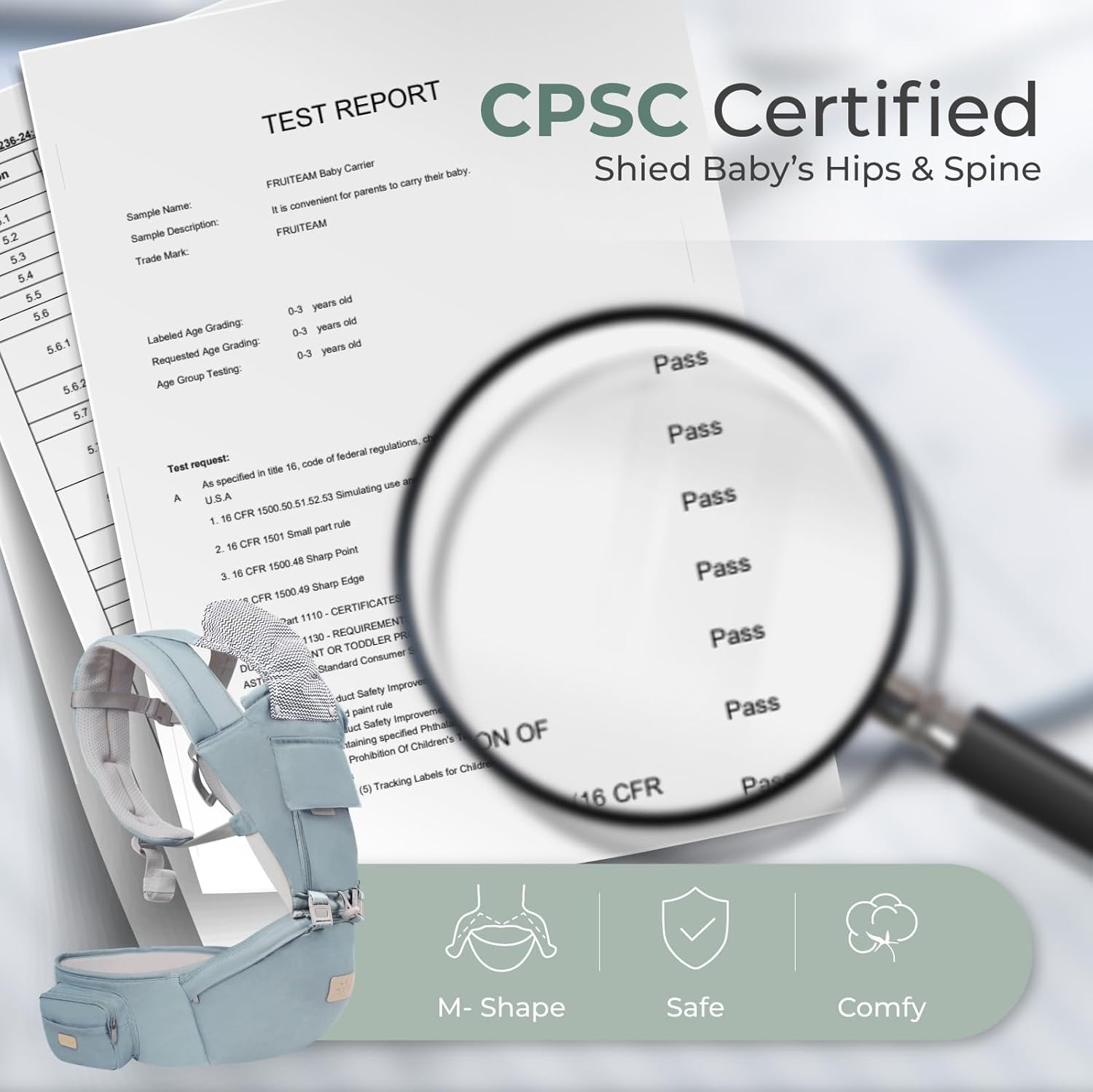 - ERGONOMIC M-POSITION SUPPORT:Designed for healthy hip development, our baby holder carrier features a wide, cushioned seat to keep baby’s legs in the ideal M-shape. Weight is evenly distributed, so parents enjoy less strain on shoulders and back.