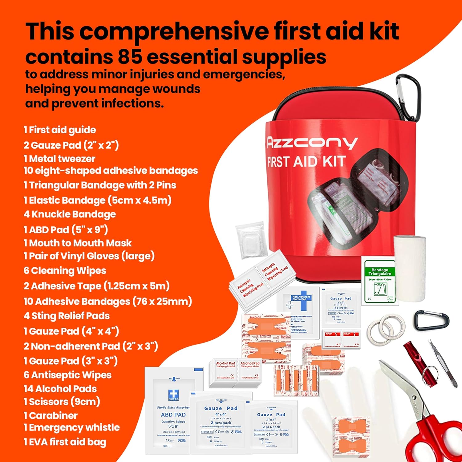 - Safety Medical Kit: Safety approved, 85 pieces of comprehensive first aid treatment products are manufactured in modern safety approved facilities, exceeding safety standards for adults and kids in all kinds of emergencies