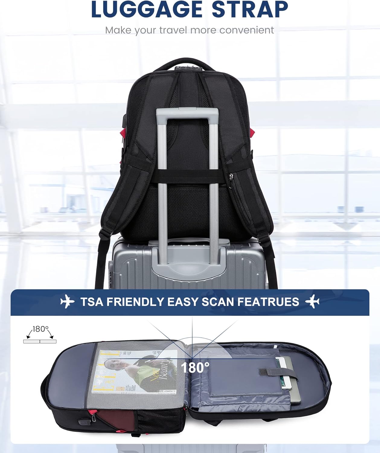 - 【LARGE CAPACITY & MULTIPLE POCKETS】 Men travel backpack owns 18 independent pockets for large storage and organization for small items. External dimensions: 13.9*8.3*18.9 Inches(L*W*H). Capacity: 45 L. Main padded compartment with dual zipper fit for 15.6, 17 and up to 17.3 inch laptop and padded compartment for Ipad.(Since the laptops' appearance of different brands is different, this backpack is suitable for most 17.3-inch computers, but if laptops' form is too large, it may not be suitable.