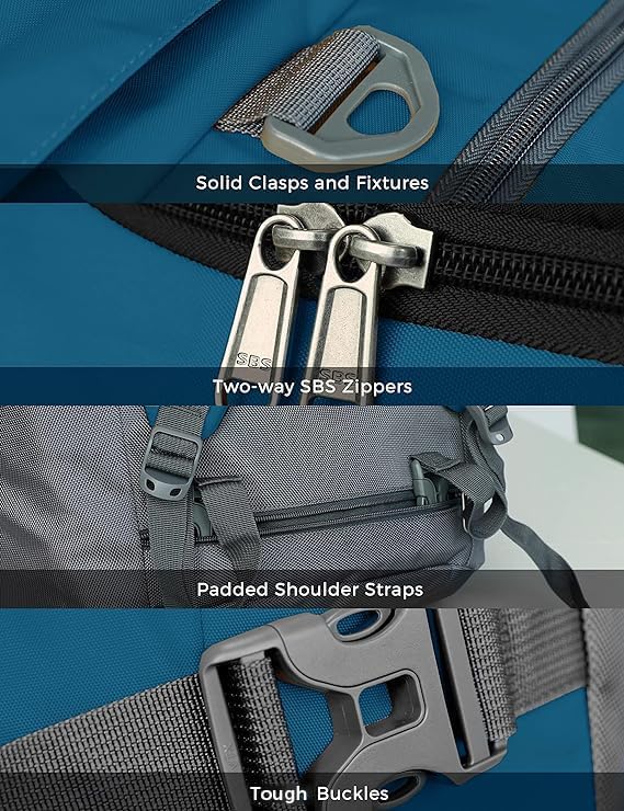 - Versatile Carrying Choices: Our travel duffel bag boasts detachable and adjustable straps, providing the option to wear it as a shoulder bag. Furthermore, two shoulder straps are cleverly concealed in the back zipper compartment, seamlessly transforming it into a backpacking backpack. The top handle allows effortless hand-carrying or convenient attachment to a suitcase. The side handles offer the flexibility to carry it alone or lift it jointly with a companion.