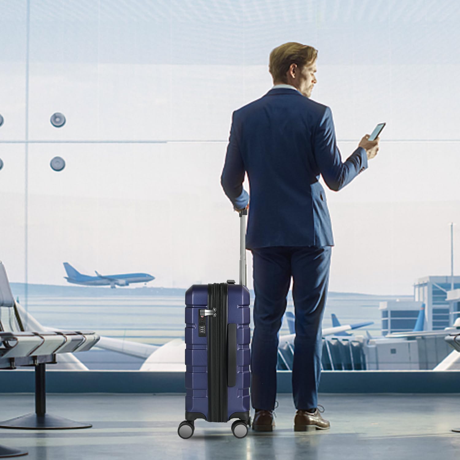 KROSER Hardside Expandable Carry On Luggage with Spinner Wheels & Built-in TSA Lock, Durable Suitcase Rolling Luggage with USB Port, Carry-On 20-Inch, Navy