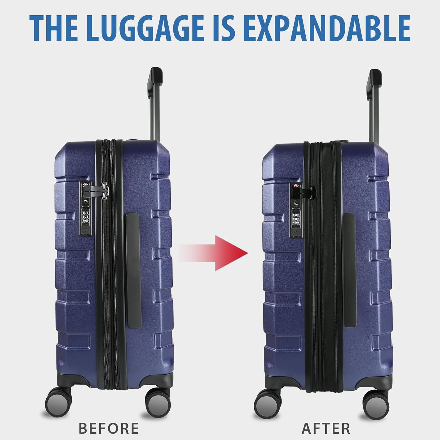 • 【Product Dimensions】Including wheels and handles, 20 inch carry on luggage airline approved : 14.1 x 9.3 x 21.5", 7.04LB, can fit in the overhead bin. The luggage is expandable.