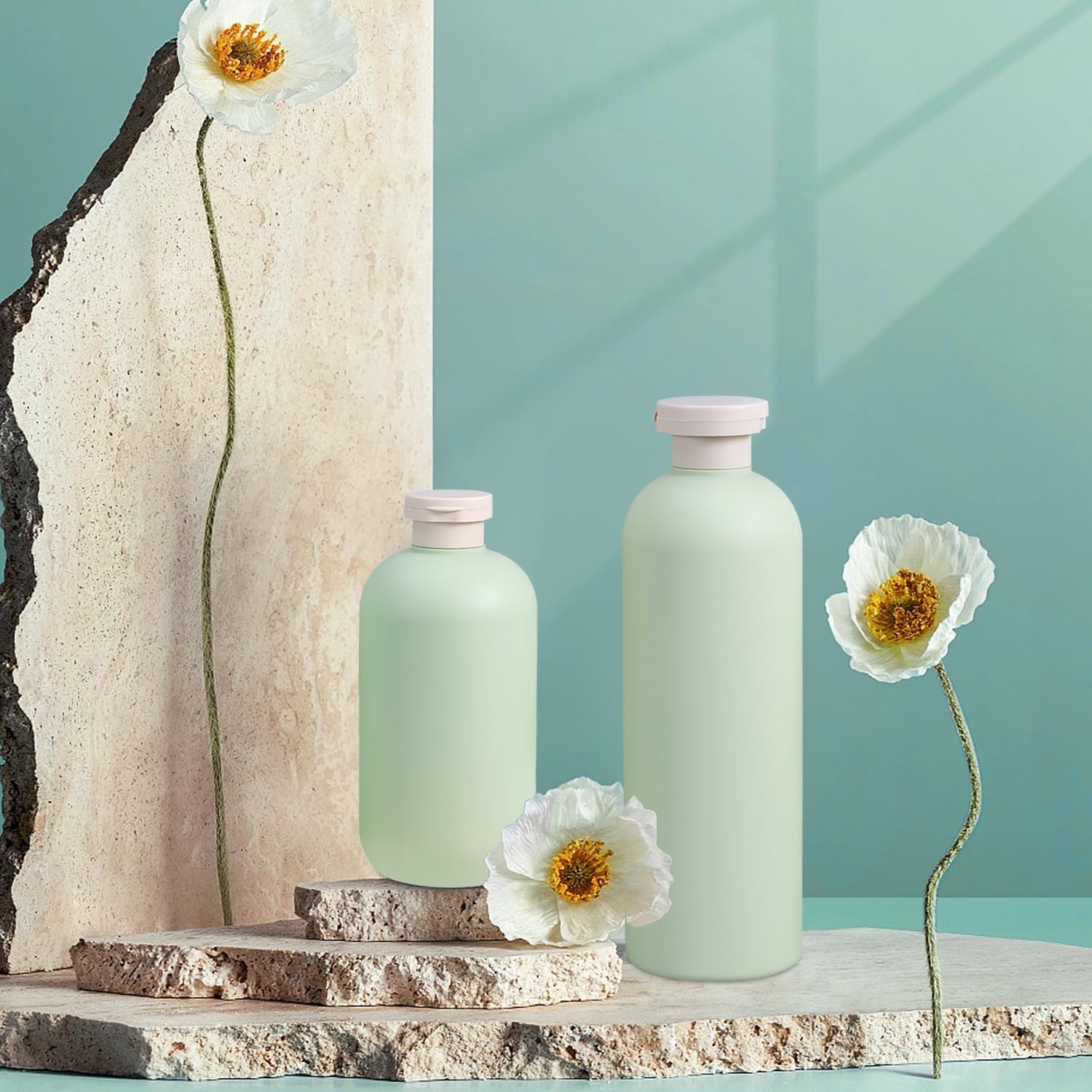 13.5 oz Plastic Travel Shampoo Bottles, Refillable Flip Cap Squeeze Bottles for Toiletries, Large Leakage-proof Travel Shampoo and Conditioner Container (Blue and Green)