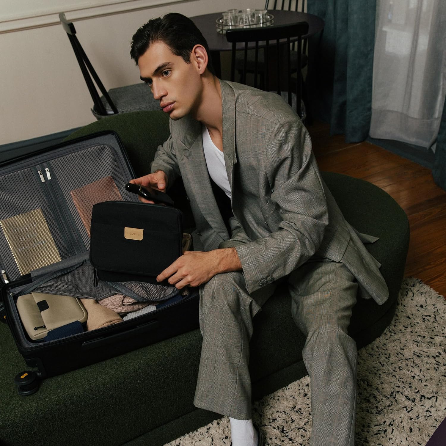 LEVEL8 Travel Toiletry Bag for Men Women, Water Repellent Shaving Bag for Toiletries Accessories, Storage Bags with Divider and Handle, Small/Black