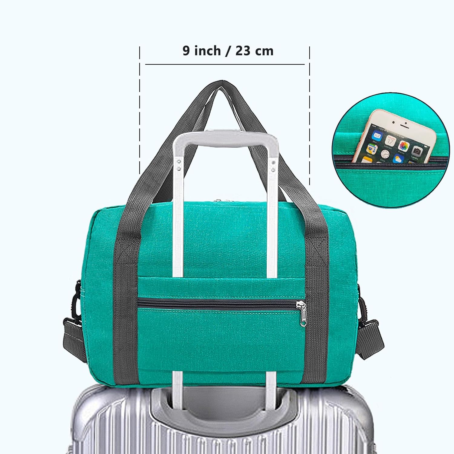 - Easy to Carry: the exterior of the travel bag features a 9inch long zippered pocket for storing items such as passports, plane tickets, and some frequently used items, which can be used to secure the bag to the luggage handle.