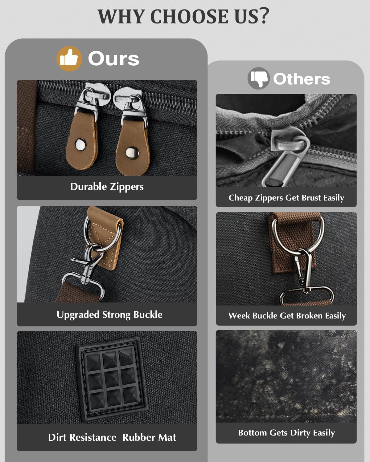 • Premium Materials: Crafted from water-resistant & tear-resistant canvas fabric, this overnight bag is built to withstand the rigors of daily use. Enhanced zippers provide durability for a seamlessly smooth user experience
