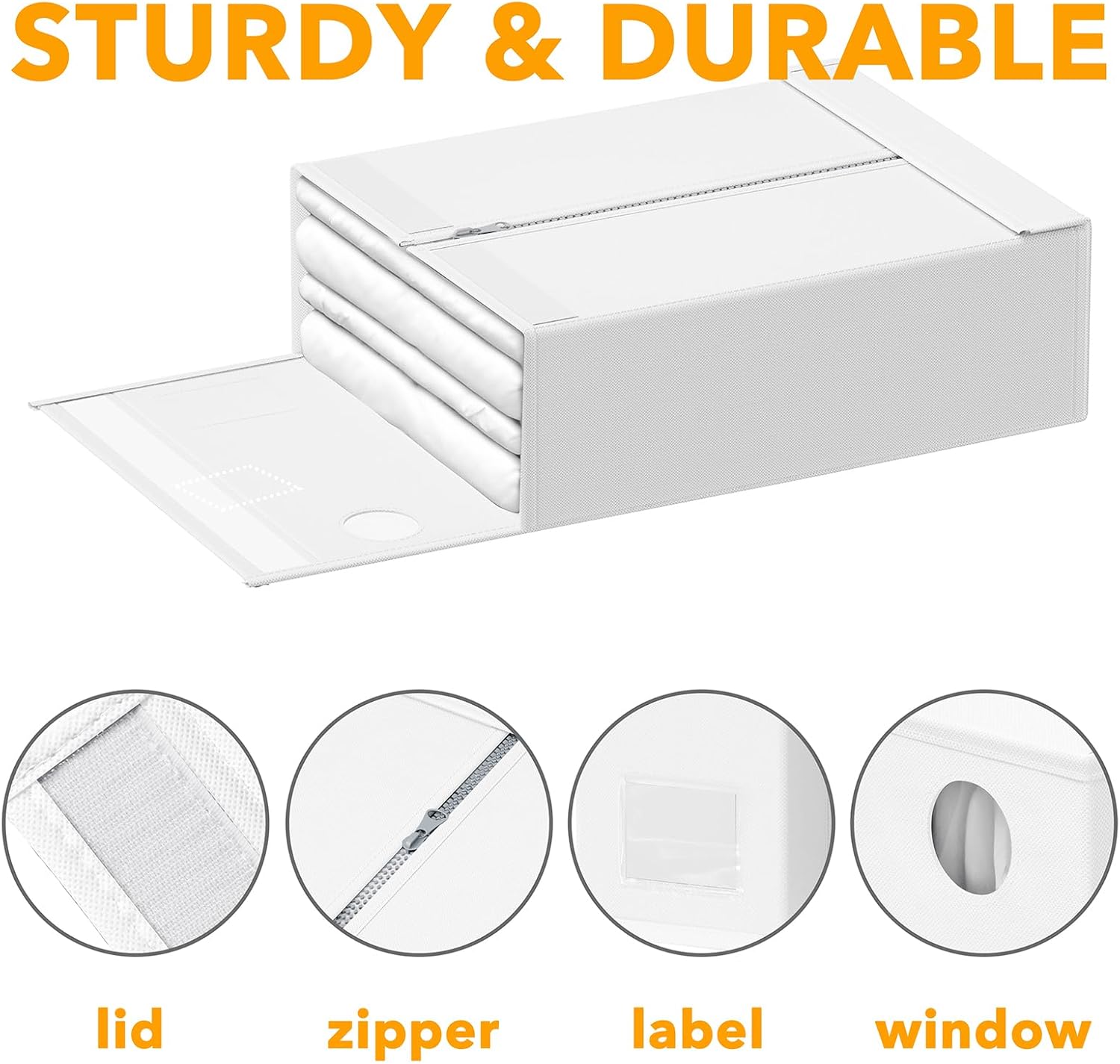 SpaceAid 12 Pack Bed Sheet Organizers and Storage, Foldable Sheet Organizer for Linen Closet, Sheets Set Folder Keeper with Window XL (Queen & King Size) Bedding Container (White, 12 Pack)