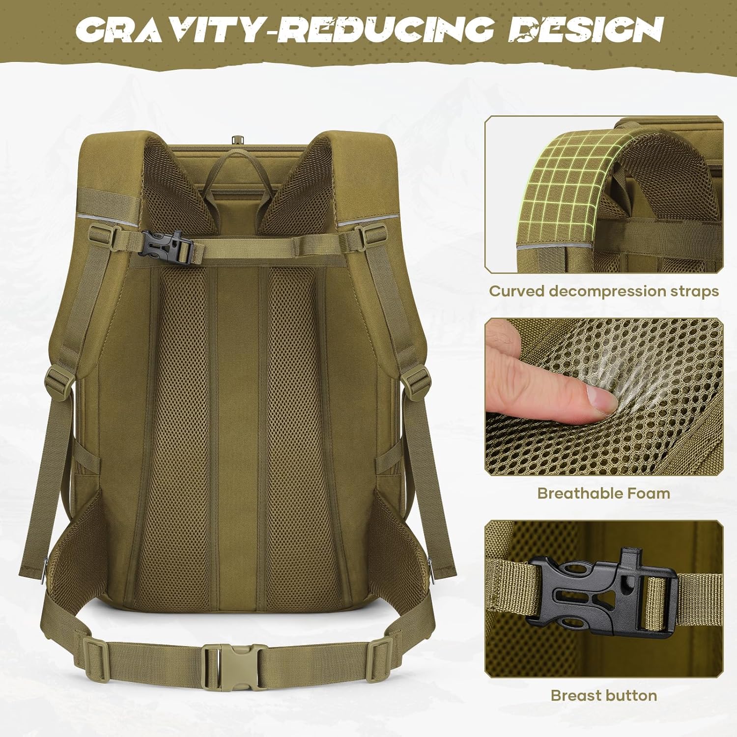 - Spacious and Organized Storage: Large capacity tactical backpack measures approximately 12.6"x 22"x 8.7" (W*H*D), capacity: 40L. The military backpack is equipped with multiple independent functional dividers and pockets, which can effectively store and categorize different tactical gear, such as laptop, tools, first aid kits and so on. Suitable for outdoor adventure, traveling, military, and even daily commuting, meets a variety of needs