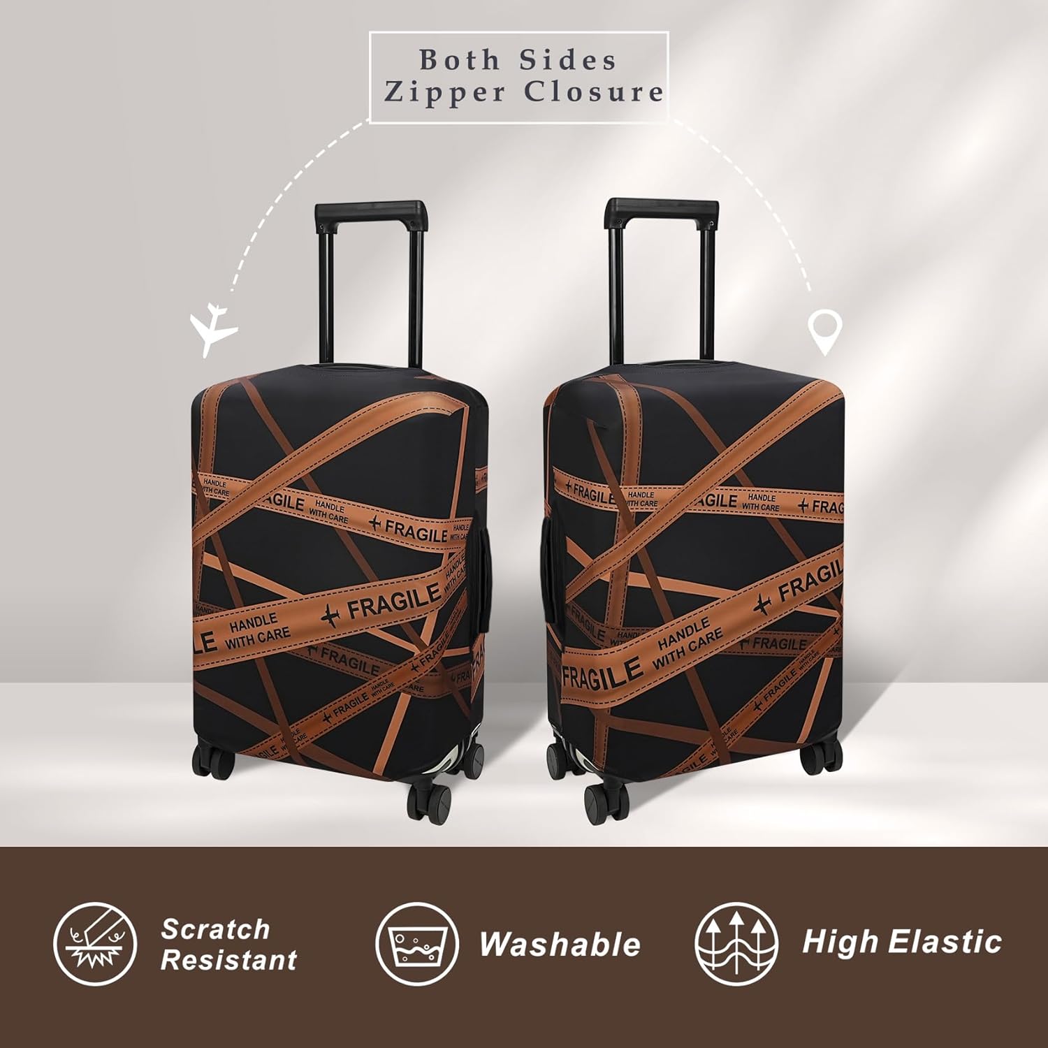 Explore Land Travel Luggage Cover Suitcase Protector Fits 18-22 Inch Case (Gold Fragile, S)