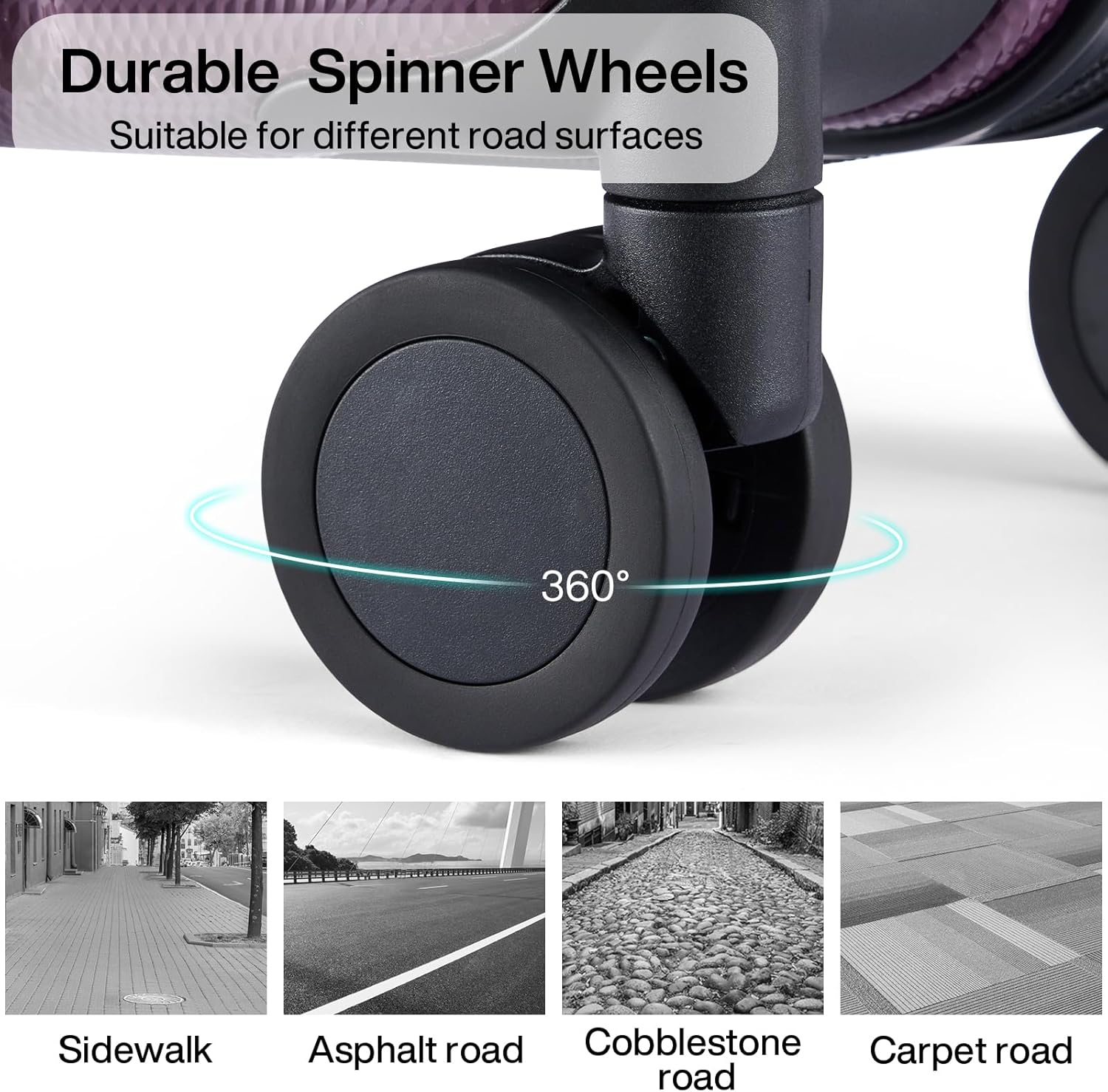 • 【High Quality Accessories】SJ . TOBOL durable spinner wheels,It is composed of precision shaft center and thickened TPE wheel skin, which is very wear-resistant,quieter and has strong bearing capacity, It is applicable to different roads such as cobblestone road and carpet road. Smooth and durable 5-strand reinforced explosion-proof zipper reverse coil prevents burst zipper. Travel-approved combination lock is safe and convenient. Ergonomics telescopic handle with multi-steps adjustment.