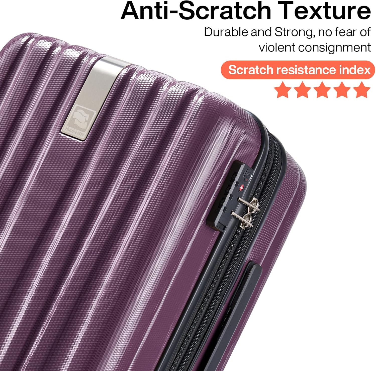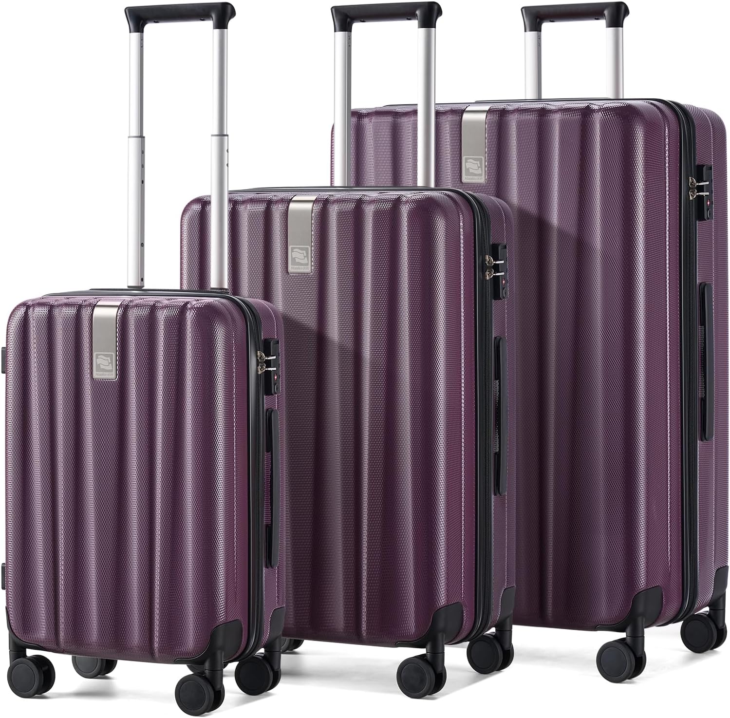 Hanke Luggage Sets 3 piece Carry On Luggage with Wheels PC Hard Shell Suitcases Lightweight Checked Tsa Luggage Extra Large Travel Suitcase Woman Men 20/24/29 Inch (Purple)