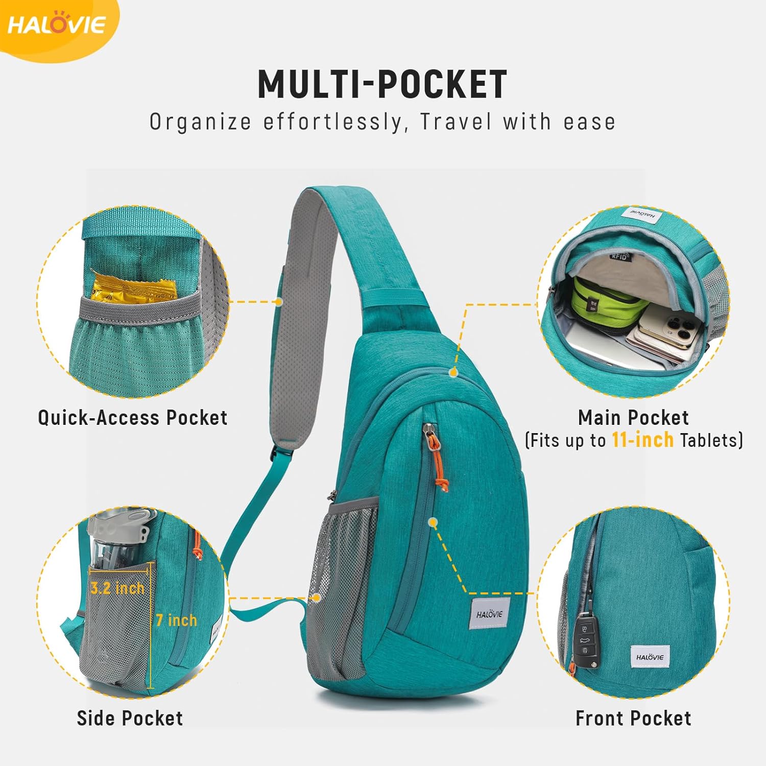 HALOVIE Anti Theft Crossbody Sling Bag RFID Travel Sling Backpack Lightweight Hiking Shoulder Chest Bag for Walking Work