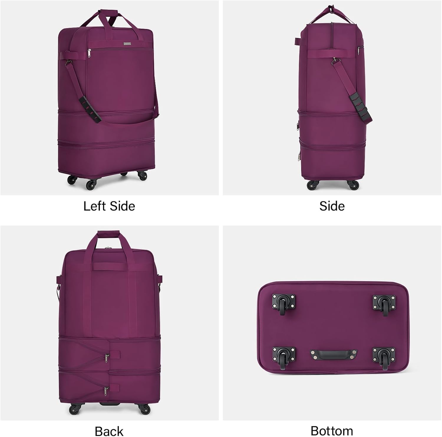 Hanke Suitcases with Wheels Expandable Foldable Luggage Bag Suitcase Collapsible Rolling Travel Bag Duffel Bag for Men Women Lightweight Suitcases without Telescoping Handle, Purple