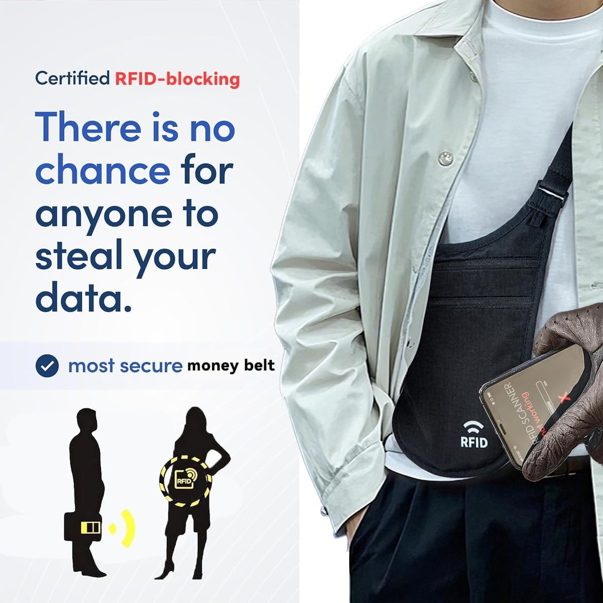 - 【Ultra-Slim, Invisible Comfort】Crafted to disappear under clothing, this lightweight Travel wallet features a soft, breathable back panel that feels gentle against your skin—ideal for hot summer travels or long flights. The 0.35-inch slim profile ensures no bulk, Ideal for all-day comfort, even on sensitive skin
