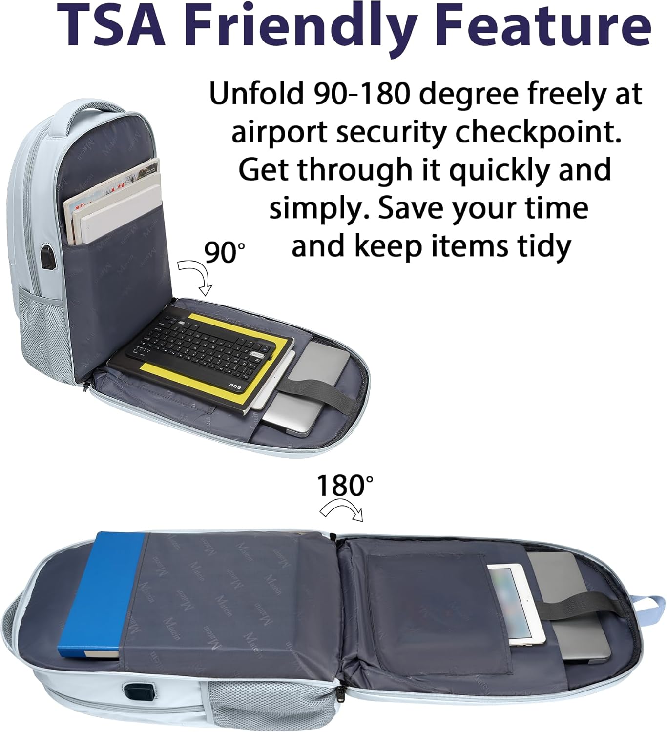 MATEIN Large College Laptop Backpack, Water Resistant Nurse Travel Backpack with USB Charging Port TSA Approved, Soft Anti Theft Comupter Bag for Work, Blue Beige