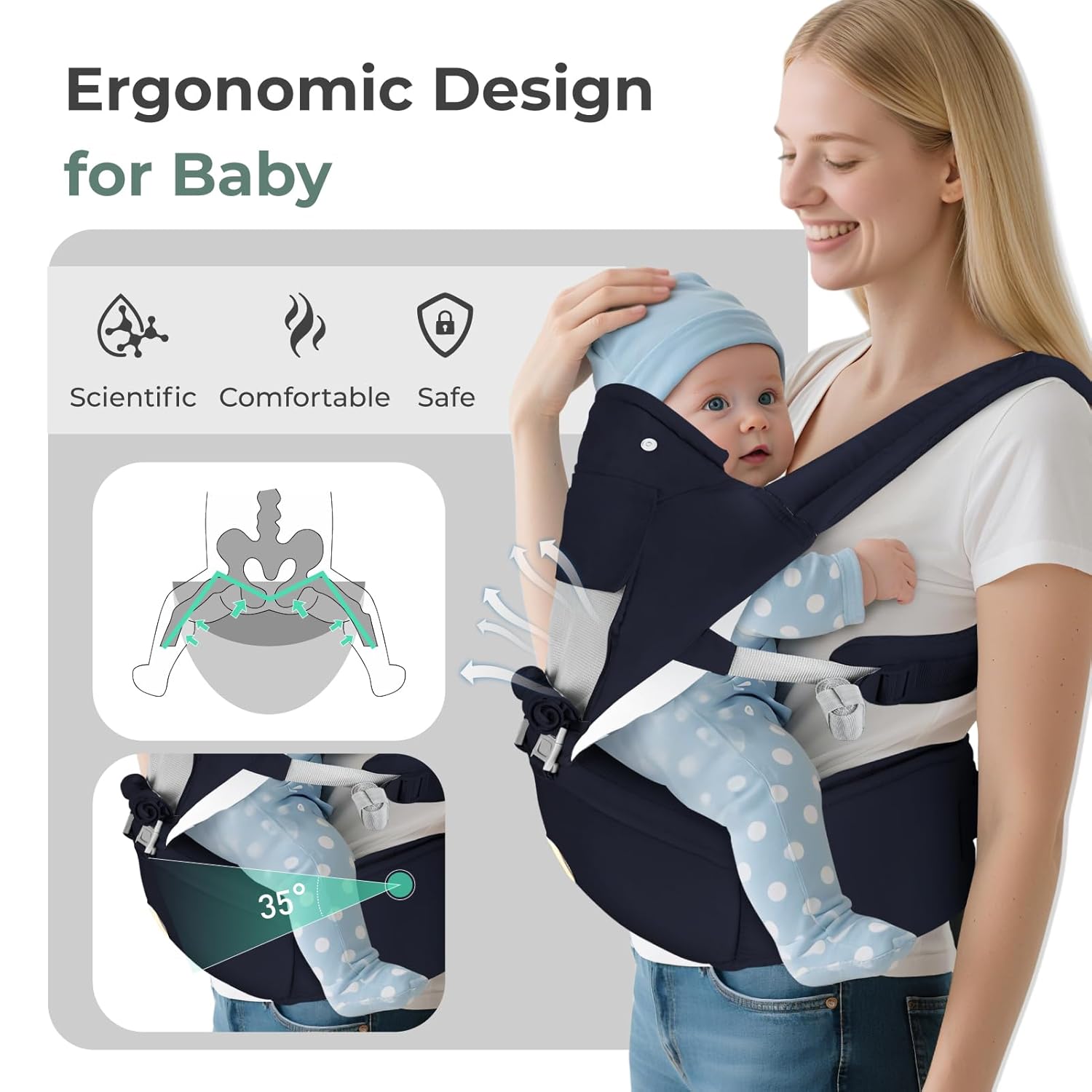 - 6-IN-1 VERSATILE DESIGN:This baby carrier grows with your little one (0-36 months)! Switch between 6 carry modes—front, back, hip, and more—thanks to detachable straps + adjustable hip seat. Perfect for feeding, travel, or chores, all while keeping your hands free
