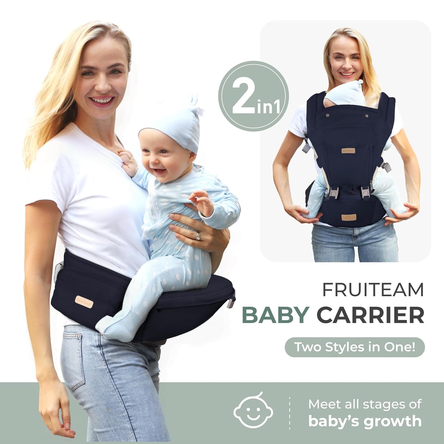 FRUITEAM Baby Carrier Newborn to Toddler, 6-in-1 Ergonomic & Adjustable Baby Carrier with Lumbar Support for All Seasons, Hands-Free, Adapt to Newborn, Infant & Toddler (Navy)