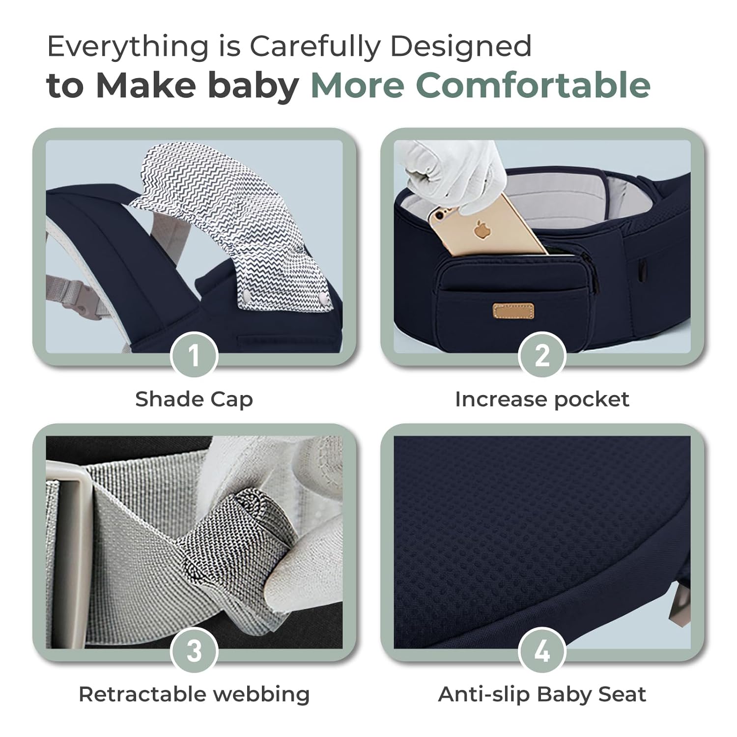 - ON-THE-GO STORAGE POCKETS:Never fumble for essentials again! This baby hip seat carrier includes a hidden waistband pocket + hip seat compartments for phones, keys, or snacks—keeping everything organized on the go.