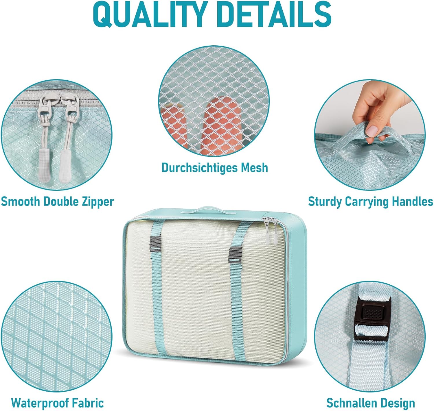 - 【Durable】Built from tear-resistant material, these compression travel cubes for packing handle heavy use; Reinforced stitching and sturdy zippers make them a reliable suitcase organizer bags set for frequent travelers.