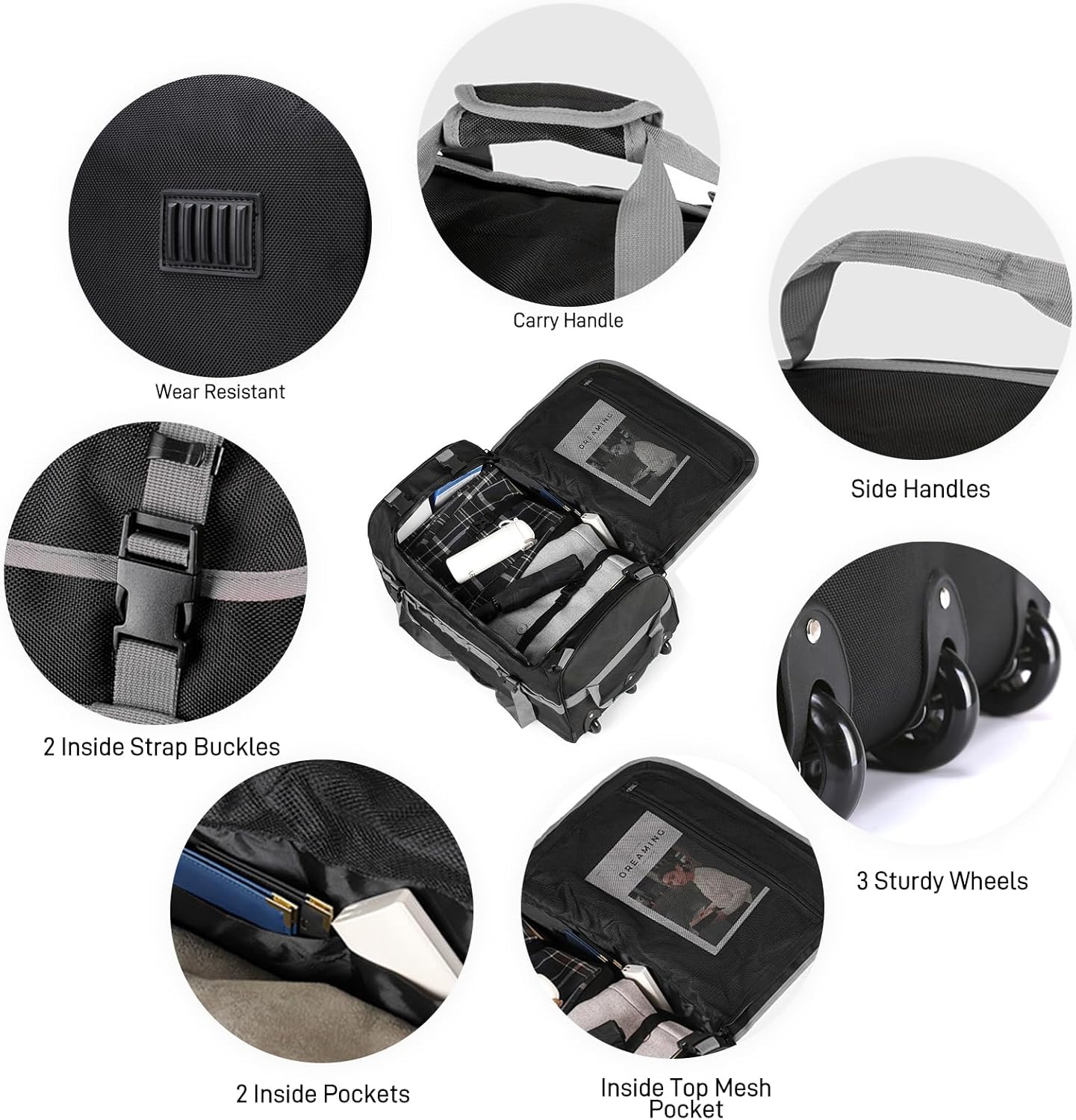 - Heavy Duty Wheels: This durable wheeled duffle bag has 3 sturdy heavy-duty rubber wheels for smooth mobility and maximum durability. The upgrade strenthend bottom is reinforced by a complete thick PVC which will definitely increase the durability and lifetime of this bag. Easily maneuvers through airports and hotels, as well as over unpaved, bumpy or muddy surfaces.