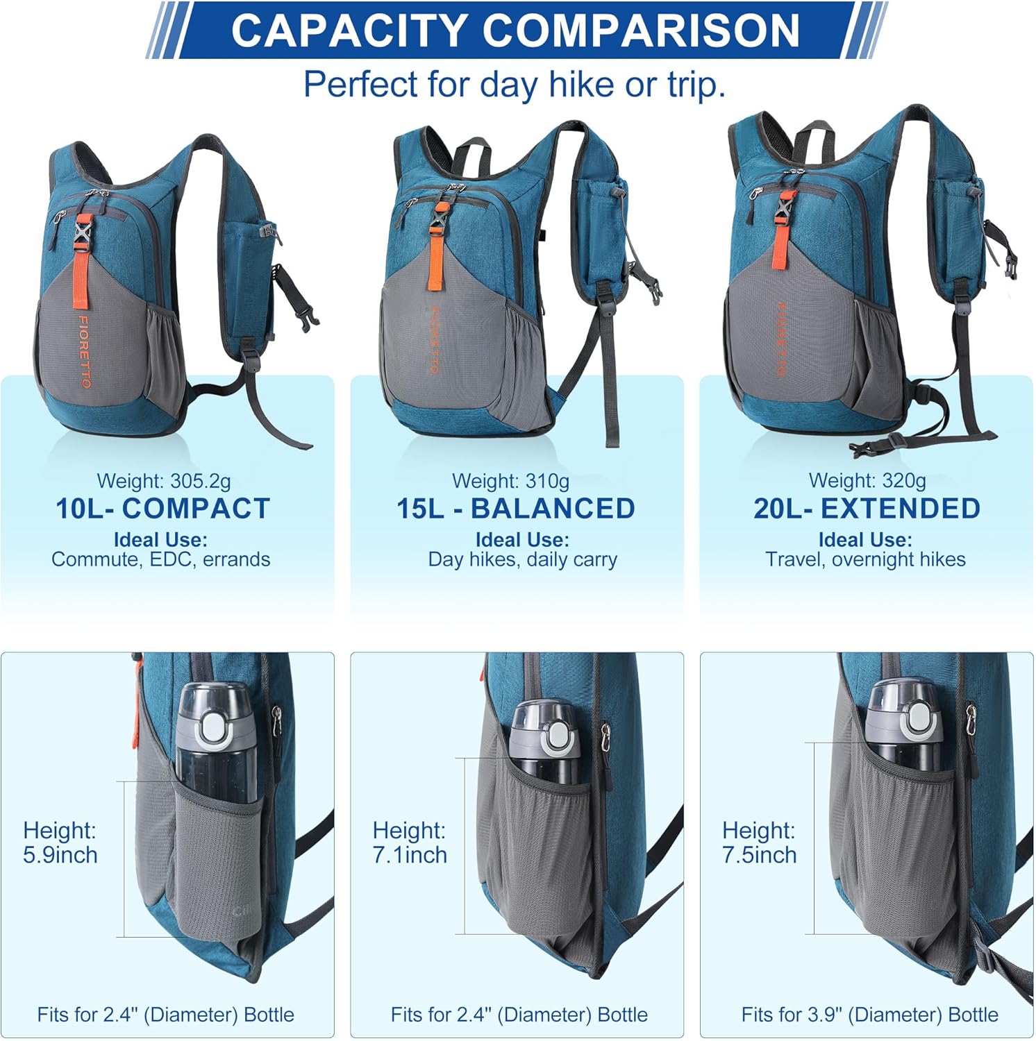 - Compact & Hiking Backpack: FIORETTO packable mini backpack measures 18.9" H x 11.8" L x 6.3" W (48x30x16cm) and weighs just 11.28oz, offering a 20L capacity ideal for minimalist adventurers, day trips, and hiking, or daily commuters. Slip it into luggage as a lightweight backpack or wear it solo for hands-free travel. Always verify that the dimensions match your needs before purchasing.