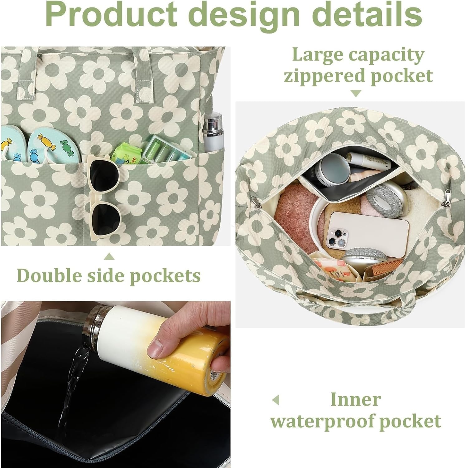 - Waterproof Beach Bag : This beach tote features high density polyester, which is sandproof, easy to clean, sand shakes right off instead of carrying it home with you.