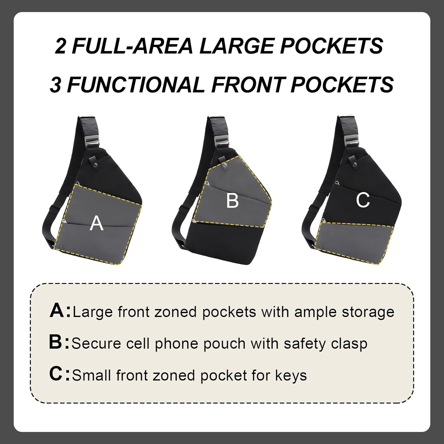 • 【Versatile Usage】This chest bag can be a shoulder bag,crossbody backpack,daypack,sling bag,fanny pack,or travel bag.Suitable for men and women,it fits any occasion from work to hiking.
