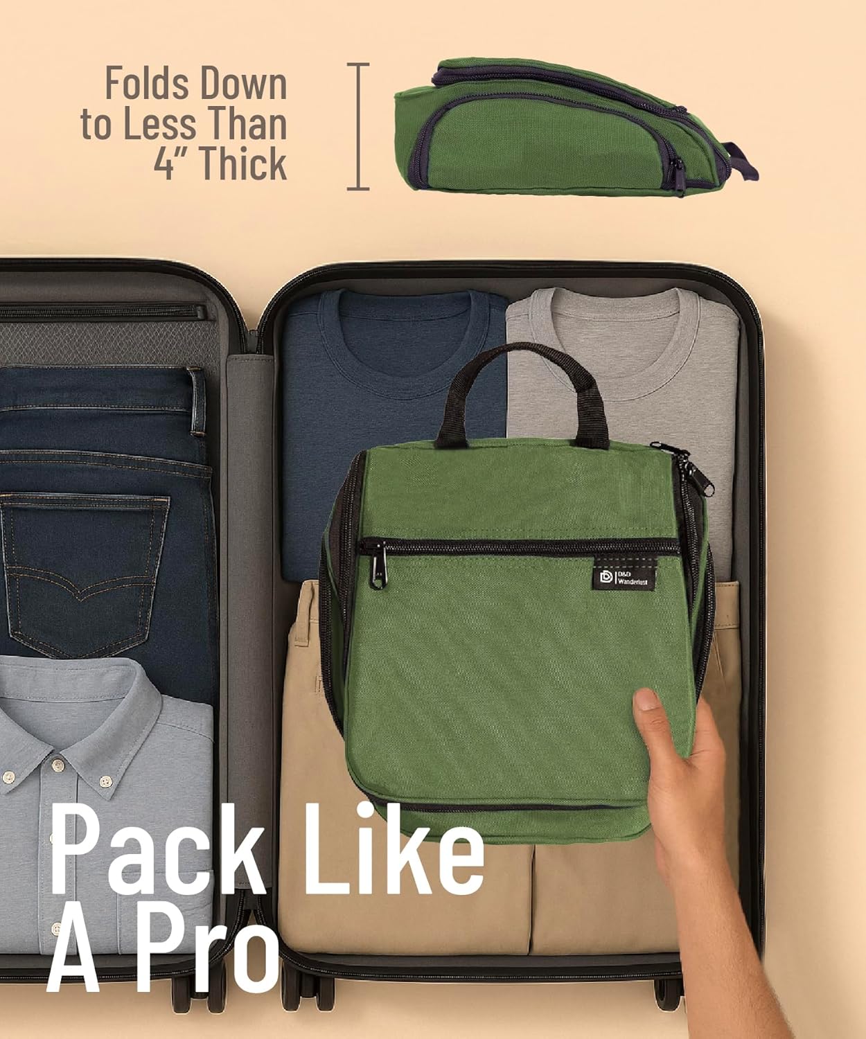 DD D&D Wanderlust D&D Hanging Travel Toiletry Bag for Men and Women. Extra Large Hanging Wash Bag Organizer with 10 Compartments, Zippers, XXL Metal Swivel Hook, Water-Resistant Nylon