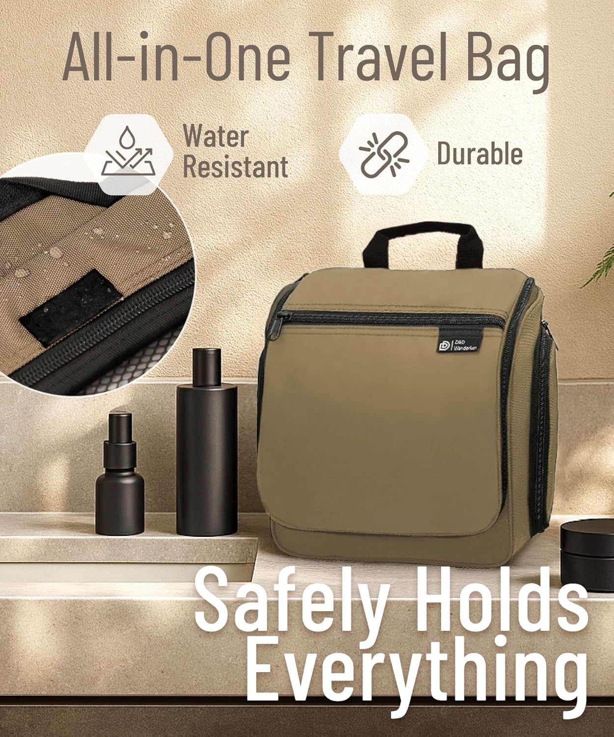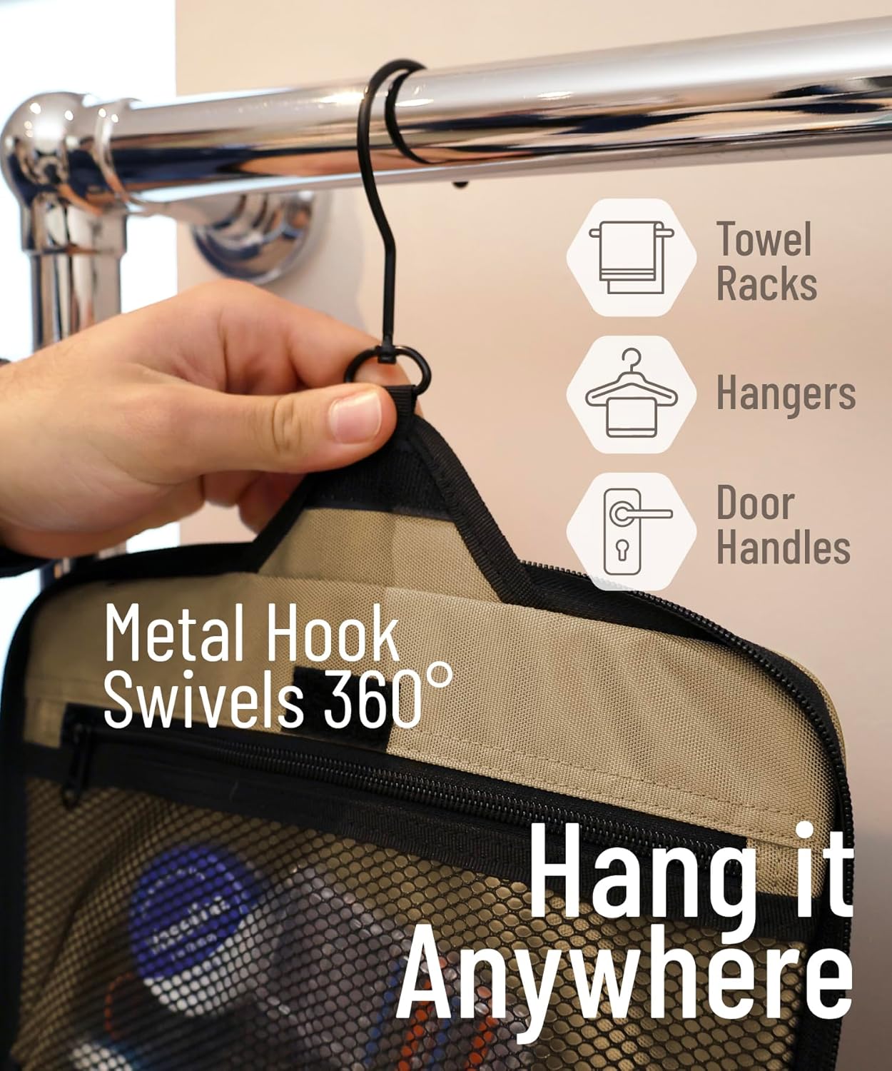 - Convenient Hanging Hook: The XXL metal swivel hook allows you to hang the bag anywhere, saving valuable counter space. It's perfect for use in hotels, bathrooms, or even on a camping trip.