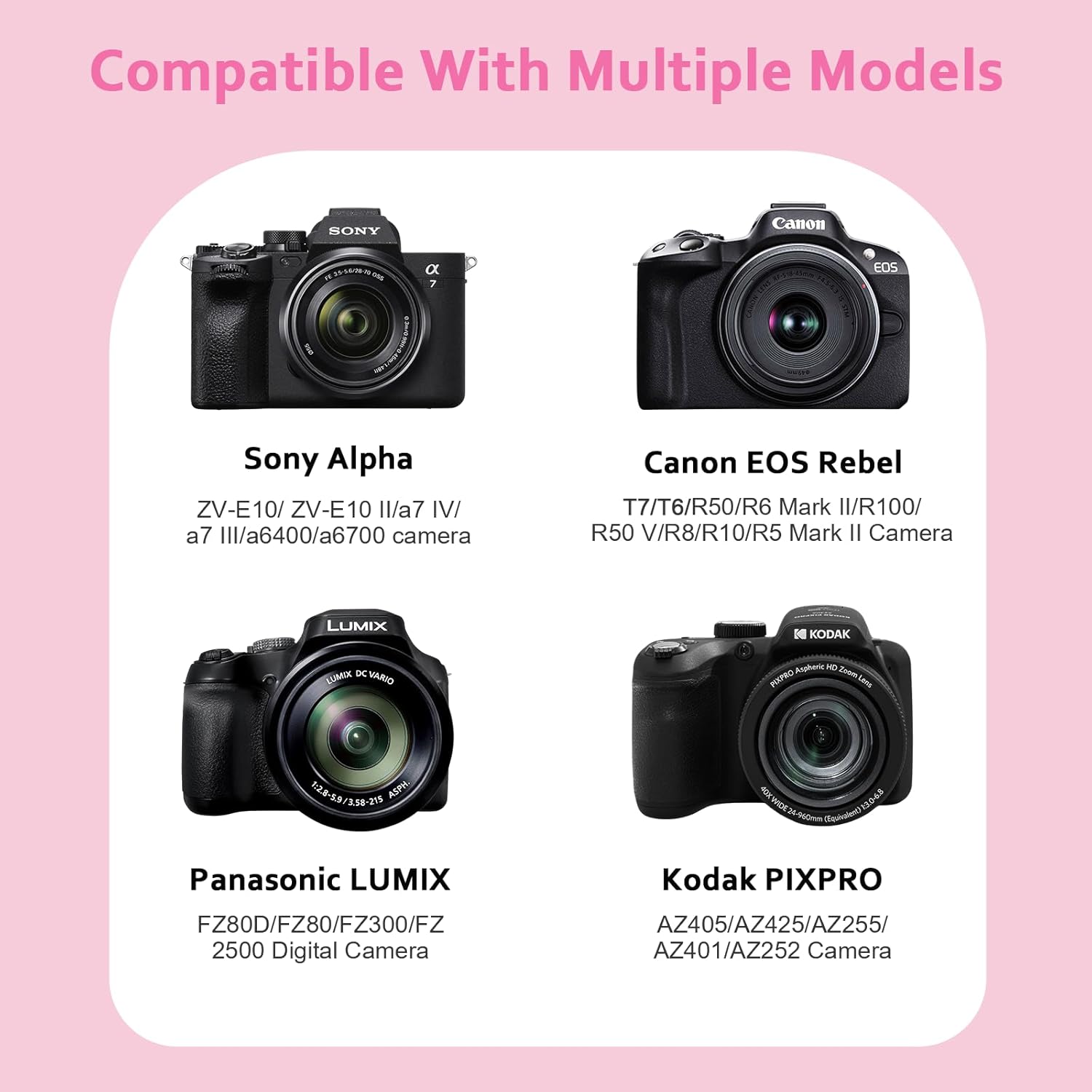 - Perfect Fit:Specifically designed for the KODAK PIXPRO AZ405/AZ425/AZ255/AZ401/AZ252/AZ528, Canon EOS Rebel T7/R50/R6 Mark II/R100/R50 V/T6/R8/R10/R5 Mark II/RP/R7/5D Mark IV/SL3/R5/T100/80D/XTi/T7i/T6i/T5/T5i/6D Mark II/70D/XT/T3i/T3/SL2/R5 C/M50 Mark II/90D/M50 DSLR SLR Camera, Sony Alpha ZV-E10/a6400/7 IV/6700/a7 III/FX3/ZVE10 II/A6100/7R V/7C II/a6000 Camera, Nikon Z6 III/Z50 II/Z 6II/Z 8/Z 30/Z 7II/D7500/D850/D3500 Camera and Panasonic LUMIX FZ80D/G85 Camera